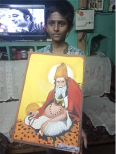 ಪಟ್ಟಣದ ಶ್ರೀ ಲಕ್ಷ್ಮಿವೆಂಕಟೇಶ್ವರ ಶಾಲೆಯ 8ನೇ ತರಗತಿಯಲ್ಲಿ ಓದುತ್ತಿರುವ ರಾಜೇಶ ಶಂಕರ ಶಿಲವಂತ ಆನಂದ ಗುರುಜೀ ಅವರ ಚಿತ್ರ ಬಿಡಿಸಿದ ಯುವಕ. ಬಾಲಕ ವಿವಿಧ ರೀತಿಯ ಕಲೆಗಳ ಅನುಭವ ಪಡೆಯುತ್ತಿಒದ್ದು, ಪೆನ್ಸಿಲ್ ನಲ್ಲಿ ಕಲಾಕೃತಿ, ಉಬ್ಬು ಕಲೆ ಬಿಡಿಸುವ ಹವ್ಯಾಸ ಬೆಳೆಸಿಕೊಂಡಿದ್ದಾನೆ. ಯುವಕನ ತಂದೆ ಶಂಕರ ಕೂಡ ರಾಜ್ಯದ ವಿವಿಧ ಧಾರ್ಮಿಕ ಕ್ಷೇತ್ರಗಳ ಬಂಗಾರ ಹಾಗೂ ಬೆಳ್ಳಿಯ ವಿವಿಧ ದೇವರ ಮೂರ್ತಿಗಳು, ಪಲ್ಲಕಿ, ದೇವರ ಮಂಟಪಗಳು ಸೇರಿದಂತೆ ವಿವಿಧ ಕಲೆಗಳ ಮೂಲಕ ಗುರುತಿಸಿಕೊಂಡಿದ್ದಾರೆ. ಇದೀಗ ಅವರ ಪುತ್ರಕೂಡ ವಿವಿಧ ಕಲೆಗಳು ಕರಗತ ಮಾಡಿಕೊಳ್ಳುತ್ತಿದ್ದು, ಹಳೆ ಸಂಸ್ಕೃತಿ ಪರಂಪೆ ಉಳಿಸಿ ಬೆಳೆಸುವ ಉದ್ದೇಶ ರಾಜೇಶ ಹೊಂದಿದ್ದಾನೆ.