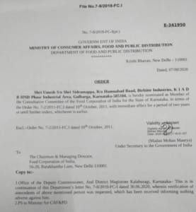 ಕೇಂದ್ರ ಆಹಾರ ನಿಗಮಕ್ಕೆ ಉಮೇಶ ಬಿರ್ಬಿಟ್ಟೆ ಅಟ್ಟೂರ್ ನೇಮಕ.