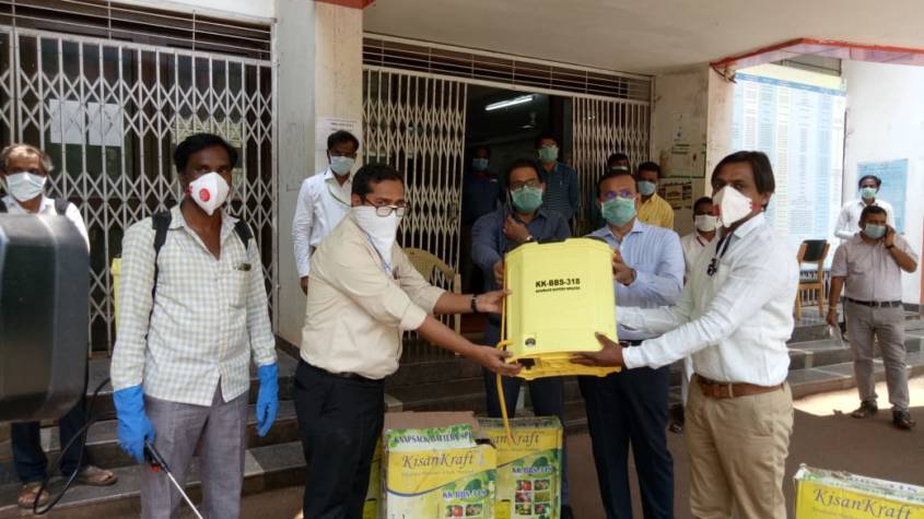 ಜಿಲ್ಲಾಡಳಿತಕ್ಕೆ ಸ್ಯಾನಿಟೈಜರ್, ಮಾಸ್ಕ, ಔಷಧಿ ಸಿಂಪಡಣೆ ಯಂತ್ರ ವಿತರಣೆ