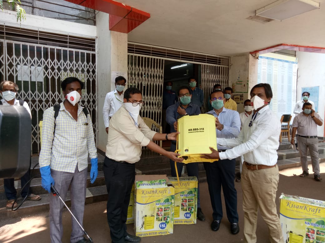 ಜಿಲ್ಲಾಡಳಿತಕ್ಕೆ ಸ್ಯಾನಿಟೈಜರ್, ಮಾಸ್ಕ, ಔಷಧಿ ಸಿಂಪಡಣೆ ಯಂತ್ರ ವಿತರಣೆ
