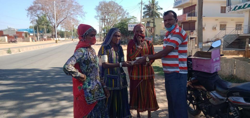 ಮನೆಯಿಲ್ಲದ ನಿರ್ಗತಿಕರಿಗೆ ಆಹಾರ ಪೊಟ್ಟಣ ವಿತರಣೆ