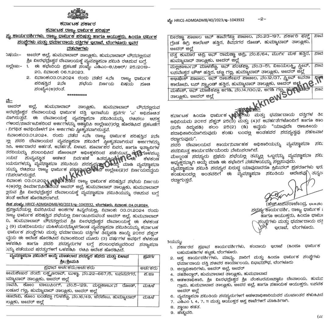 ಮಹಾದೇವಿ ಬಂಡೆಪ್ಪಾ ಗುಳಶೆಟ್ಟಿ ಹಾಗೂ ದೇವಸ್ಥಾನದ ಪ್ರಧಾನ ಅರ್ಚಕರನ್ನು ಸಮಿತಿ ಸದಸ್ಯರನಾಗಿ ನೇಮಕಮಾಡಿ ಆದೇಶ ಹೊರಡಿಸಿದ್ದಾರೆ.