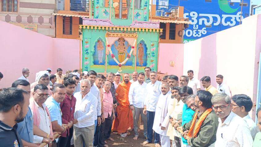 ಹಿರೇಮಠದ ರೇಣುಕ ಗಂಗಾಧರ ಶಿವಾಚಾರ್ಯರು ರಥಕ್ಕೆ ವಿಶೇಷ ಪೂಜೆ ಸಲ್ಲಿಸುವ ಮೂಲಕ ಮೂಲ ಸ್ಥಳದಿಂದ ರಥ ಮುಂದೆ ಸಾಗಿಸಲು ಚಾಲನೆ ನೀಡಿದರು.
