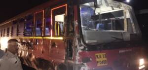 ಸರ್ಕಾರಿ ಬಸ್ – ಕಂಟೇನರ್ ಮಧ್ಯೆ ಡಿಕ್ಕಿ