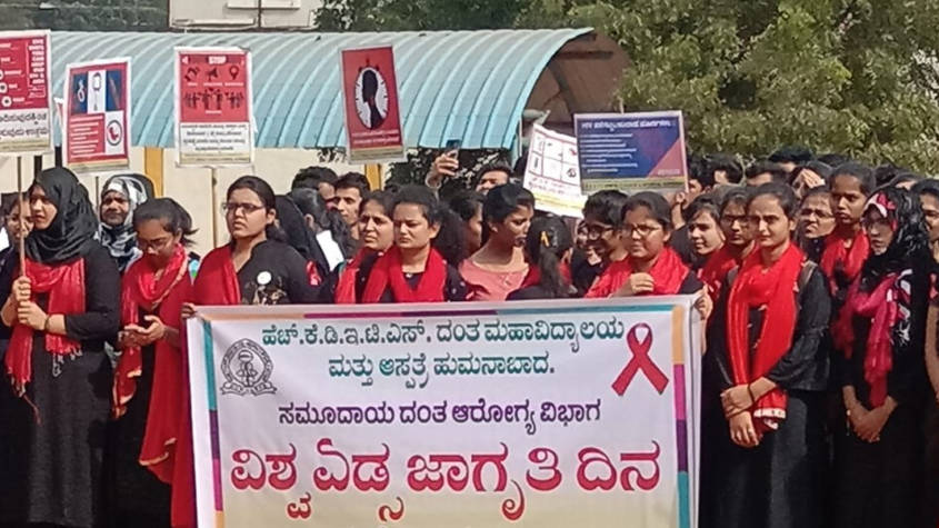 ಹುಮನಾಬಾದ: ಪಟ್ಟಣದ ಎಚ್.ಕೆ.ಡಿ.ಇ.ಟಿ ದಂತ ಮಹಾವಿದ್ಯಾಲಯ ಮತ್ತು ದಂತ ಆಸ್ಪತ್ರೆ ವತಿಯಿಂದ ಡಿ.1 ಭಾನುವಾರ ವಿಶ್ವ ಏಡ್ಸ್ ಜನ ಜಾಗೃತಿ ಮೂಡಿಸುವ ಕಾರ್ಯ ನಡೆಯಿತು.